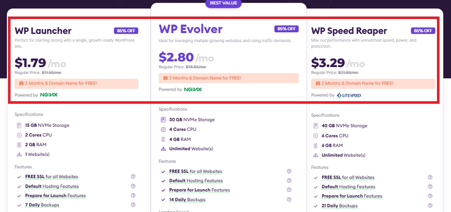 There are three different plans for HostArmada WordPress Hosting, which are: